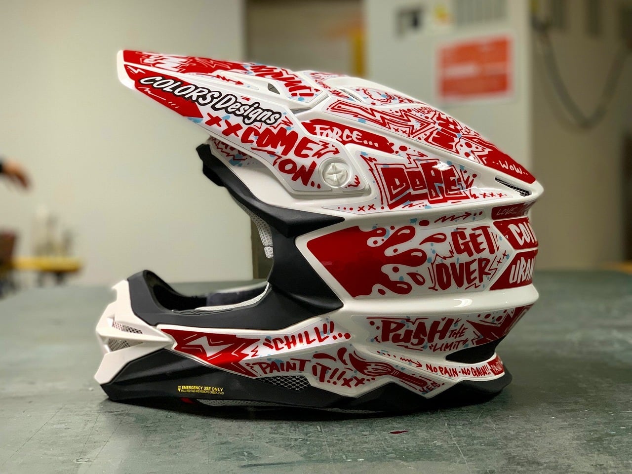 デカールを貼ってオリジナルデザインのヘルメットにカスタムできます。